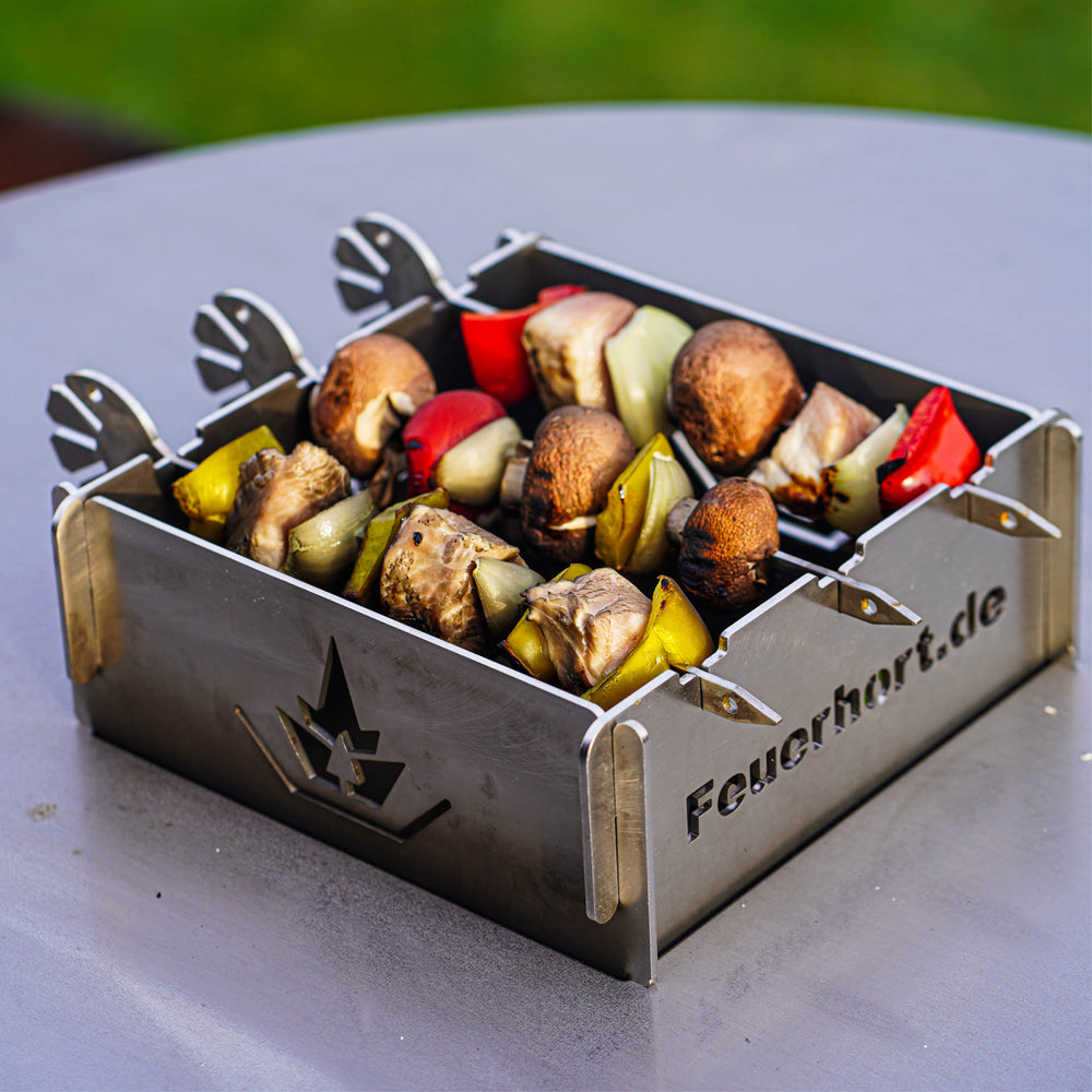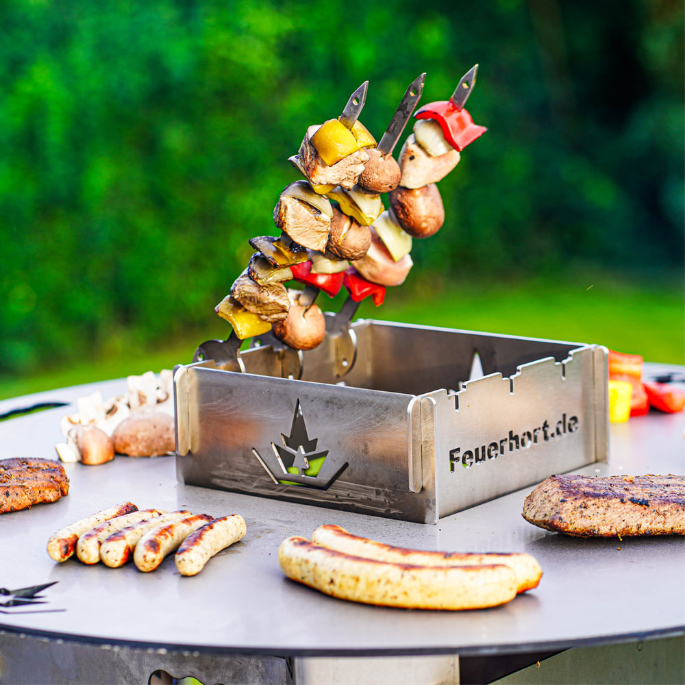 Als Brennmaterial kann jede Holzart genutzt werden. Mit unserer Gluthalterung können auch Grillkohlebriketts und jede Art von Grillkohle verwendet werden.